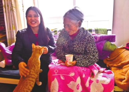 劉琳輕輕推開(kāi)門,朝里張望,奶奶正在睡覺(jué),窩在奶奶懷里的貓豎起耳朵,一直看著她。這只貓叫“鐺鐺”,劉琳去學(xué)校上課的時(shí)候,就只有鐺鐺陪著奶奶。坐在床沿,看著睡夢(mèng)中的奶奶,劉琳露出了微笑。