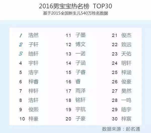 圖說:2014年起名通公布的“中國重名最多的姓名TOP30”