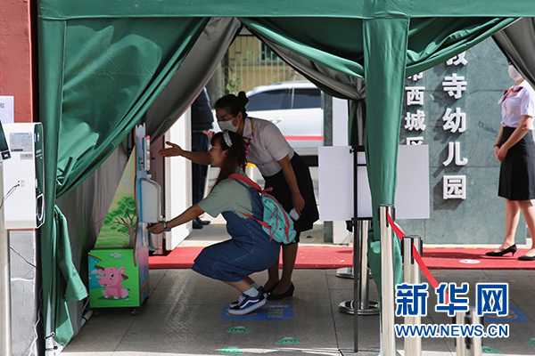 新華網(wǎng)北京6月4日電 6月3日,為做好兒童返園準備,北京市西城區(qū)三教寺幼兒園進行了開園模擬演練。此次演練由幼兒園老師扮演家長和孩子,旨在讓老師知曉幼兒園防護措施且有的放矢地去開展活動,并通過線上的方式讓孩子們知道如何進行自我保護。