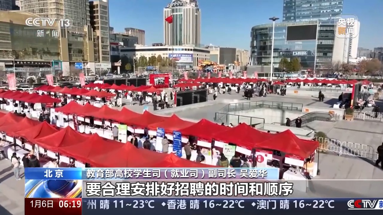 教育部高校學(xué)生司(就業(yè)司)副司長 吳愛華:大學(xué)生比較關(guān)心的首先是政策性崗位,要合理安排好招聘的時間和順序,公務(wù)員、事業(yè)單位、國有企業(yè),還有軍隊的征兵入伍、基層項目等,政策性的崗位能招盡招,能早招,盡量早一點招,這樣給畢業(yè)生到市場上的求職留出足夠的時間。
