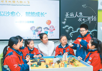 近日,多地中小學(xué)開(kāi)學(xué),迎來(lái)春季新學(xué)期。圖為山東省棗莊市薛城區(qū)雙語(yǔ)實(shí)驗(yàn)小學(xué)老師為學(xué)生進(jìn)行心理健康輔導(dǎo)。王龍飛攝(新華社發(fā))
