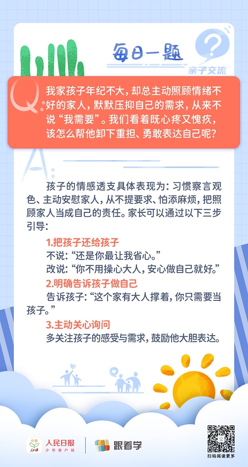 每日一題丨孩子過(guò)度懂事壓抑自我,家長(zhǎng)該如何引導(dǎo)?