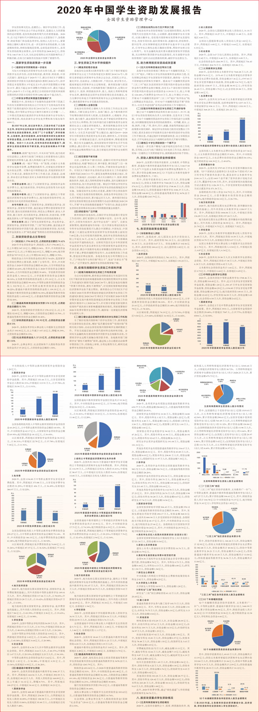 學(xué)生資助事關(guān)民生,連著民心。做好學(xué)生資助工作,是促進教育公平和社會公平的必然要求,是建設(shè)人力資源強國的迫切需要,是加快推進教育現(xiàn)代化的重要基礎(chǔ)。2020年,在習(xí)近平新時代中國特色社會主義思想指引下,各級教育、財政等部門和各級各類學(xué)校,堅持以人民為中心,緊緊圍繞立德樹人根本任務(wù),進一步完善學(xué)生資助政策,大力推進精準資助,持續(xù)加強規(guī)范管理,全面促進資助育人,各項學(xué)生資助政策全面落實,全年資助資金2408.20億元,資助學(xué)生14617.50萬人次,為抗擊疫情和應(yīng)對汛情影響作出了積極貢獻,在助力打贏脫貧攻堅戰(zhàn)中發(fā)揮了重要作用。