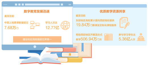 一位年近七旬的老先生,約上朋友,一起學(xué)習(xí)攝影、醫(yī)學(xué)等慕課;一門從線下搬到線上的課,此前20年聽(tīng)過(guò)的學(xué)生可能一共只有近2000人,現(xiàn)在一堂課就吸引近3000人……在線教育處處能學(xué)、時(shí)時(shí)可學(xué),我國(guó)教育數(shù)字化建設(shè)近年來(lái)取得顯著成就。