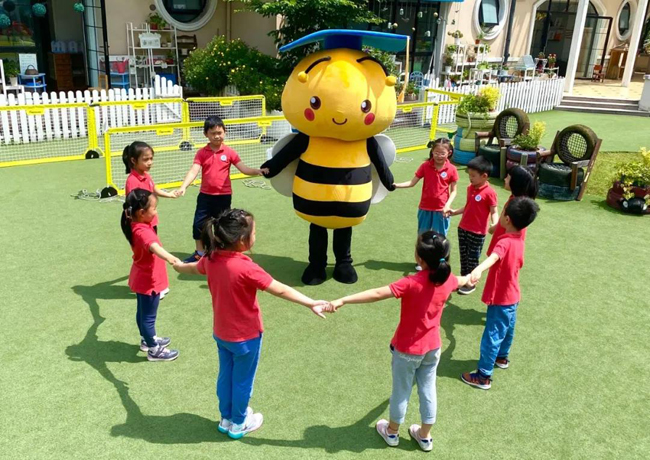 小育走進徐匯區(qū)梅隴幼兒園,和萌萌噠小盆友比心(小育扮演者:趙旭華 攝影:宿銘珊)