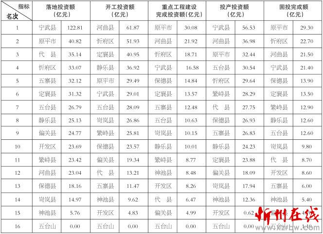 忻州1-5月各縣 (市、 區(qū)) 重點工程和固定資產完成額排名表
