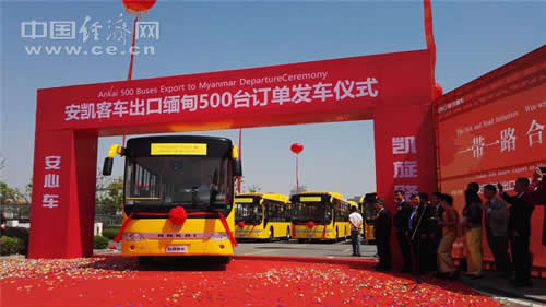 在“一帶一路”的大背景下,憑借以“技術、品質、商業(yè)模式”構筑的品牌競爭力,安凱客車脫穎而出成為中國優(yōu)秀品牌在緬甸展示“中國制造”風采的榮耀代表。4月11日,安凱客車與仰光公共巴士有限公司簽署了500臺 10.5米安凱牌天然氣公交車采購協議,合同金額2800 萬美元(約合人民幣1.93 億元)。