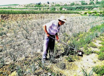 8月18日,河曲縣舊縣鄉(xiāng)楊家窊村村民劉官達(dá)正在紅蔥地里鋤草。近年來(lái),該村充分利用產(chǎn)業(yè)扶貧資金扶持發(fā)展特色紅蔥種植,打造“一村一品”主導(dǎo)產(chǎn)業(yè),有效增加農(nóng)民收入,鞏固脫貧成果。賈金理 攝