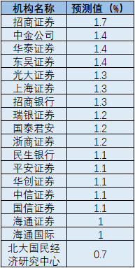 據(jù)Wind資訊數(shù)據(jù)顯示,十八家機構(gòu)對6月份CPI的平均預測值為同比上漲1.2%。其中,招商證券給出了上漲1.7%的最高預測值;北大國民經(jīng)濟研究中心的預測值最低,為同比上漲0.7%。