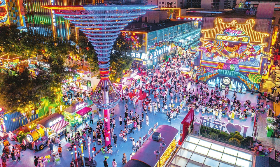 6月11日晚,市民在運(yùn)城市鹽湖區(qū)星河生活廣場消夏。鹽湖區(qū)升級改造后的星河生活廣場燈光璀璨、人流如織,人們紛紛前來打卡、購物消費(fèi)。