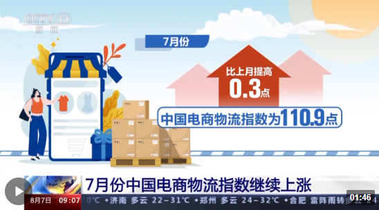 7月份中國電商物流指數(shù)繼續(xù)上漲
