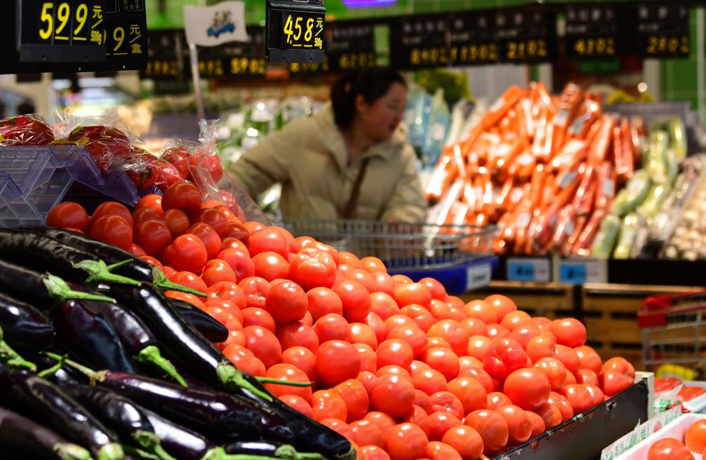 消費(fèi)者在江蘇省無(wú)錫市一家超市里選購(gòu)蔬菜(3月9日攝)。新華社發(fā)(還月亮攝)