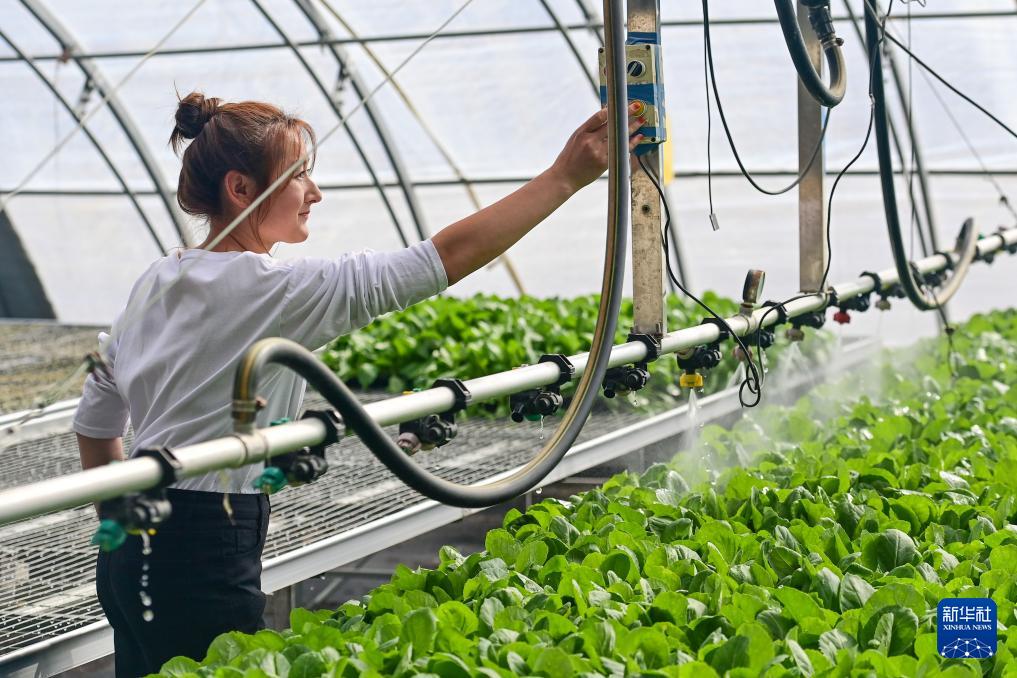 在新疆阿克蘇市阿依庫(kù)勒鎮(zhèn)蔬菜基地,種植戶操作噴淋設(shè)備為幼苗澆水(3月22日攝)。