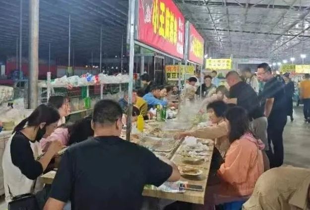 下午6時,公園東街便民市場結束短暫的“休眠”被準時喚醒,迎來一波“夜市大軍”,鐵板魷魚、東北燒烤、煎餅果子、臭豆腐、麻辣燙……來自四面八方的小吃商販魚貫而入。停車、支桌、擺凳、備料、開火,緊接著煙火升騰、人聲鼎沸。至此,這個平日里只在早上為附近居民提供生活便利的菜市場完成了身份切換,開啟夜市模式。