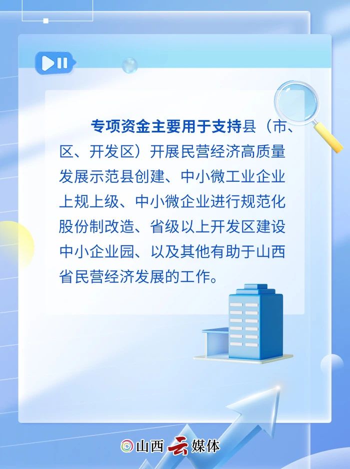 為進(jìn)一步促進(jìn)山西省民營經(jīng)濟(jì)發(fā)展,近日,省財(cái)政廳、省民營經(jīng)濟(jì)發(fā)展局共同制定了《省級民營經(jīng)濟(jì)發(fā)展專項(xiàng)資金管理辦法》,明確了省級民營經(jīng)濟(jì)發(fā)展專項(xiàng)資金的支持內(nèi)容和支持標(biāo)準(zhǔn),自2025年6月1日起施行。