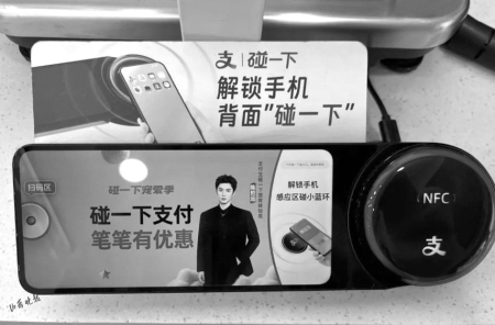 一家屈臣氏門店工作人員介紹道,“用戶手機只需要支持NFC功能就可以,平時NFC 開關(guān)是打開的,支付時,在手機亮屏解鎖就可以與商家‘碰一下’收銀設(shè)備,二者之間進行觸碰交互后完成支付。