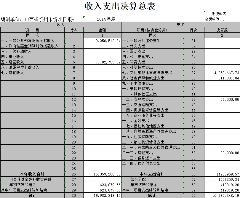 三、忻州日?qǐng)?bào)社2019年部門決算收支情況說(shuō)明