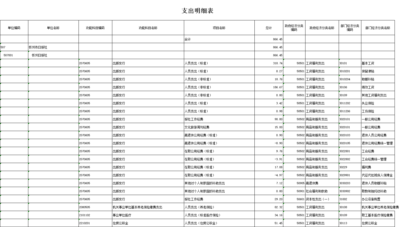 15、支出明細(xì)表