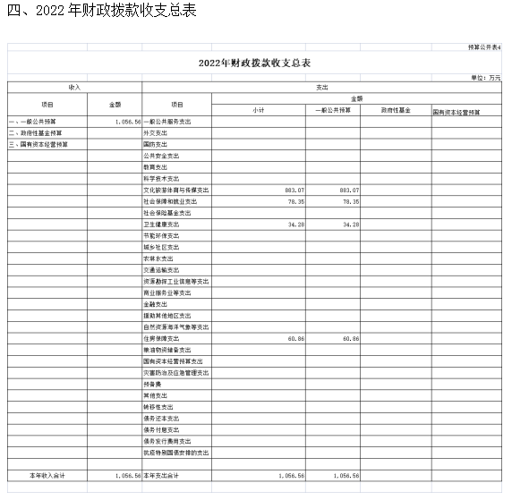 一、2022年預算收支總表