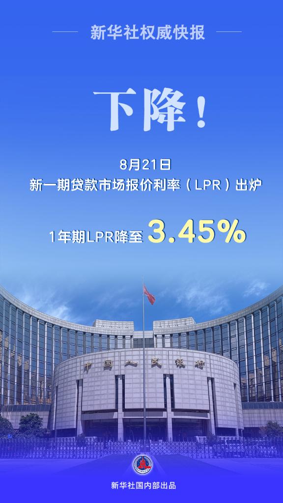 下降10個(gè)基點(diǎn)!1年期LPR降至3.45%