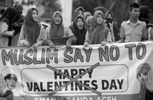 然而,在世界上一些觀念相對保守的國家或地區(qū),情人節(jié)仍然受到不同程度的抵制。據(jù)英國《每日郵報》13日報道,在印尼亞齊省一些地區(qū),慶祝情人節(jié)仍被視為“不法行為”,并被政府當局嚴令禁止。該省首府城市班達亞齊禁止市民互相贈送賀卡或巧克力。該市市長伊里查說:“我們的社區(qū)和穆斯林年輕人不應慶祝非伊斯蘭教的節(jié)日……政府當局有義務預防公眾和年輕一代人從事不法行為。”據(jù)稱,當?shù)貓?zhí)法人員將在情人節(jié)前后加緊巡邏,嚴查送花或贈送禮物等行為。