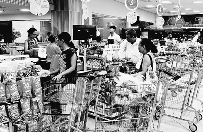 由于巴西通貨膨脹攀升導(dǎo)致消費不振,民眾購物更趨謹(jǐn)慎。圖為在里約熱內(nèi)盧一家超市,當(dāng)?shù)孛癖娫诓少徤畋匦杵?。記?顏 歡攝