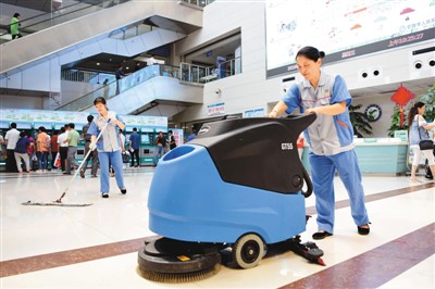 兩位清潔工在安徽省銅陵市人力資源和社會(huì)保障局開(kāi)發(fā)的市人民醫(yī)院公益性崗位上工作。過(guò)仕寧 攝(人民圖片)