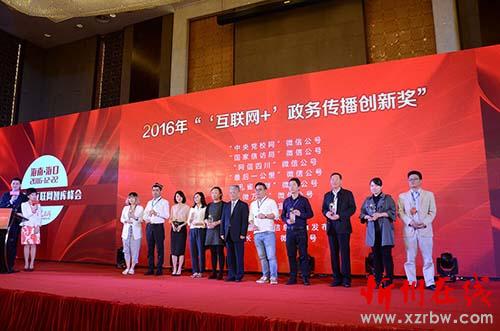本報訊 12月22日,首屆全國互聯(lián)網(wǎng)智庫峰會暨第四屆網(wǎng)絡(luò)輿情論壇在海南省??谑新≈卣匍_。中央及各?。ㄊ?、自治區(qū))宣傳和網(wǎng)信部門領(lǐng)導(dǎo)、國內(nèi)業(yè)界知名專家、學(xué)者、政務(wù)新媒體代表等200余人齊聚一堂,圍繞“‘十三五’供給側(cè)改革背景下輿論新格局”主題,深入探討互聯(lián)網(wǎng)內(nèi)容建設(shè)與供給、政務(wù)輿情回應(yīng)和引導(dǎo)的新理念、新思路、新格局。會議期間,舉行了2016年“互聯(lián)網(wǎng)+政務(wù)傳播創(chuàng)新獎”、“政務(wù)輿情回應(yīng)優(yōu)秀獎”、“城市新媒體傳播優(yōu)秀獎”和“全國政法新媒體建設(shè)優(yōu)秀獎”頒獎儀式。忻州隨手拍榮獲2016年全國“互聯(lián)網(wǎng)+政務(wù)傳播創(chuàng)新獎”,為十佳之一。