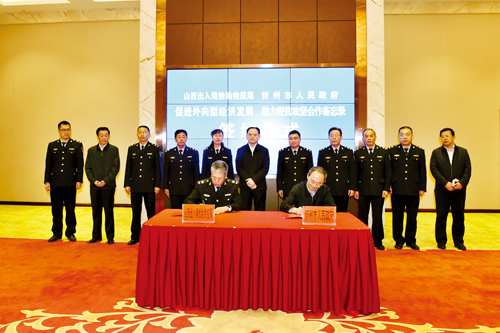 為進一步貫徹落實省委省政府《關(guān)于全面擴大開放的意見》,市政府和山西出入境檢驗檢疫局本著“合作、服務(wù)、促進、發(fā)展”的原則,經(jīng)認真協(xié)商,就發(fā)揮各自職能優(yōu)勢,促進農(nóng)產(chǎn)品擴大出口、創(chuàng)建法蘭出口質(zhì)量安全示范區(qū)以及支持五臺山機場航空口岸臨時對外開放等方面達成共識,建立合作機制,促進我市對外開放和外向型經(jīng)濟發(fā)展,助力脫貧攻堅。具體合作事項包括:一、促進農(nóng)產(chǎn)品擴大出口。確定重點幫扶產(chǎn)業(yè),創(chuàng)建出口食品農(nóng)產(chǎn)品質(zhì)量安全示范區(qū),培育出口企業(yè),打造知名品牌,拓展國際市場。二、助推出口工業(yè)品質(zhì)量提升。推動質(zhì)量品牌提升,推進工業(yè)產(chǎn)品“三同”工程,加強國外技術(shù)性貿(mào)易措施應(yīng)對,強化公共檢測技術(shù)服務(wù)。三、支持五臺山機場航空口岸臨時對外開放。全力支持五臺山機場對外開放口岸平臺建設(shè),科學規(guī)劃和建設(shè)五臺山機場口岸檢驗檢疫技術(shù)查驗設(shè)施,做好口岸核心能力建設(shè)和動植物檢疫規(guī)范化建設(shè)各項工作,防范國外人類傳染病和動植物疫情疫病傳入,保障國門生物安全。