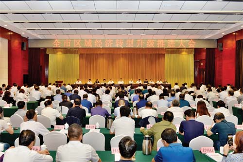 會議指出,要在六方面做好轉(zhuǎn)型升級工作。第一,在規(guī)劃與指導(dǎo)上,要把握高度,突出精度。必須清醒地把握轉(zhuǎn)型升級的大背景、大趨勢,全市上下要強(qiáng)化不轉(zhuǎn)沒出路、慢轉(zhuǎn)就落后的理念,必須準(zhǔn)確把握轉(zhuǎn)型升級的新標(biāo)準(zhǔn)、新要求,始終堅(jiān)持轉(zhuǎn)型為綱、產(chǎn)業(yè)為王、創(chuàng)新為上、改革為要,要做大優(yōu)勢,補(bǔ)齊短板。必須加強(qiáng)和改善黨對經(jīng)濟(jì)工作的領(lǐng)導(dǎo),將轉(zhuǎn)型升級內(nèi)容納入市委常委會1+3季度經(jīng)濟(jì)運(yùn)行分析制度,做到底清數(shù)明、精準(zhǔn)指導(dǎo)。第二,在產(chǎn)業(yè)和項(xiàng)目上,要突出轉(zhuǎn)型、推動轉(zhuǎn)型。核心要在六大主戰(zhàn)場主陣地,突出新動能培育、新技術(shù)應(yīng)用、新產(chǎn)品開發(fā)。要緊盯產(chǎn)業(yè)項(xiàng)目不放,緊盯相關(guān)指標(biāo)不放,緊盯落后的縣(市、區(qū))和部門不放,大力推動支柱產(chǎn)業(yè)轉(zhuǎn)型升級,大力推動開發(fā)區(qū)轉(zhuǎn)型升級,大力推動民營經(jīng)濟(jì)轉(zhuǎn)型升級。要把功夫下在招商引資、招財(cái)引智和項(xiàng)目落地上。要落實(shí)責(zé)任制,將縣細(xì)化到干部和崗位。第三,在協(xié)調(diào)與環(huán)境上,要深化改革、擴(kuò)大開放。要堅(jiān)持以改革促轉(zhuǎn)型,堅(jiān)持以開放促轉(zhuǎn)型,堅(jiān)持以環(huán)保倒逼轉(zhuǎn)型,堅(jiān)持以環(huán)境保障轉(zhuǎn)型。第四,在市場與人才上,要激活主體,突出創(chuàng)新。要以更大力度推進(jìn)創(chuàng)新發(fā)展,補(bǔ)齊我市創(chuàng)新驅(qū)動短板,要發(fā)揮市場主導(dǎo)作用,強(qiáng)化企業(yè)主體地位和科技人才的主力作用,在新一輪的人才大戰(zhàn)中有所作為,引導(dǎo)創(chuàng)新要素向企業(yè)集聚。要全面深化企業(yè)改革,扎實(shí)推進(jìn)國企改革和轉(zhuǎn)型升級。要為企業(yè)家放心干、放膽干、放手干撐腰做主,要發(fā)揮金融在區(qū)域經(jīng)濟(jì)轉(zhuǎn)型中的發(fā)動機(jī)、產(chǎn)業(yè)升級中的推進(jìn)器作用,切實(shí)激發(fā)活力。第五,在責(zé)任與擔(dān)當(dāng)上,要強(qiáng)化主責(zé),聚焦主業(yè)。要認(rèn)真貫徹落實(shí)中辦印發(fā)的《關(guān)于進(jìn)一步激勵廣大干部新時代新?lián)?dāng)新作為的意見》,全面落實(shí)習(xí)近平總書記關(guān)于“三個區(qū)分開來”的重要要求,旗幟鮮明為敢于擔(dān)當(dāng)?shù)母刹繐窝膭拧J锌h黨委、政府班子成員對轉(zhuǎn)型升級要做到指標(biāo)到人、臺賬管理、動態(tài)調(diào)控、年底交賬,并作為領(lǐng)導(dǎo)班子和領(lǐng)導(dǎo)干部年度民主生活會對照檢查的重要內(nèi)容,作為干部選拔任用的重要依據(jù)。黨政部門的每一位班子成員,都要聯(lián)系一個產(chǎn)業(yè)園區(qū),抓好一個以上轉(zhuǎn)型升級示范項(xiàng)目。相關(guān)部門都要對標(biāo)履職,量化到人,共同推動今年轉(zhuǎn)型升級考核指標(biāo)應(yīng)統(tǒng)盡統(tǒng)、能升盡升、能增盡增、全力破零。第六,在考核與問責(zé)上,要分類實(shí)施,從嚴(yán)要求。在今年區(qū)域經(jīng)濟(jì)轉(zhuǎn)型升級考核中排后三位的要公開作出檢查。