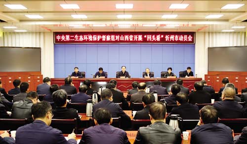 圖為中央第二生態(tài)環(huán)境保護督察組對山西省開展“回頭看”忻州市動員會會場。趙菁