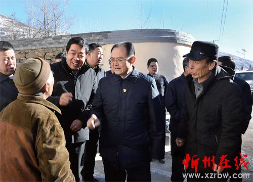圖為省人大常委會(huì)副主任、市委書記李俊明在繁峙縣巖頭鄉(xiāng)茶鋪村向村民了解脫貧情況。本報(bào)記者劉紀(jì)森