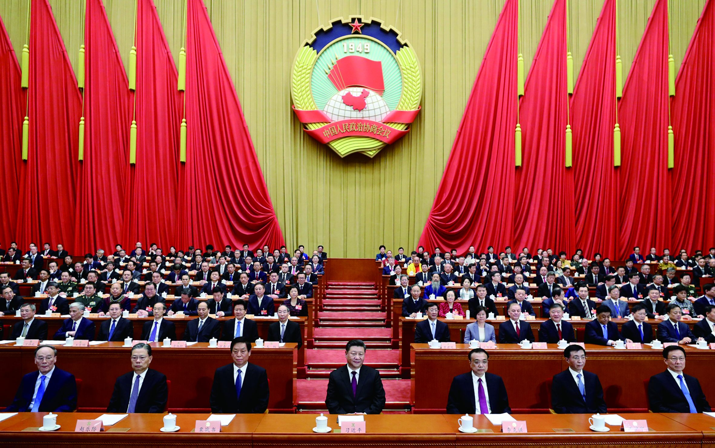 3月的北京,春和景明。人民大會堂大禮堂內(nèi)穹頂群燈璀璨,會場氣氛莊重熱烈。中國人民政治協(xié)商會議會徽懸掛在主席臺正中,十面鮮艷的紅旗分列兩側(cè)。