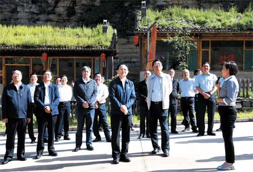 省人大常委會副主任、市委書記李俊明和參會人員在寧武縣涔山鄉(xiāng)大石洞村觀摩整村提升情況。本報(bào)記者 劉紀(jì)森 攝