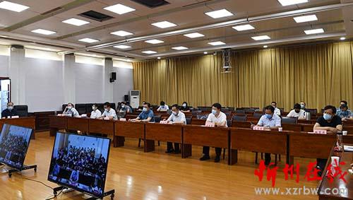 會(huì)議以電視電話會(huì)議形式召開(kāi),各縣(市、區(qū))設(shè)分會(huì)場(chǎng),兼任縣委書記的市領(lǐng)導(dǎo)在相關(guān)縣分會(huì)場(chǎng)參加會(huì)議。