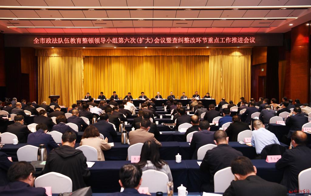本報訊 (記者楊峰雷)4月20日,市委召開市政法隊伍教育整頓領導小組第六次(擴大)會議暨查糾整改環(huán)節(jié)重點工作推進會議。省政法隊伍教育整頓第四駐點指導組組長賈明建講話。市委書記、市政法隊伍教育整頓領導小組組長鄭連生主持并講話。市委副書記、政法委書記、宣傳部長、市政法隊伍教育整頓領導小組常務副組長郭奔勝安排部署查糾整改環(huán)節(jié)重點工作。省政法隊伍教育整頓第四駐點指導組副組長蔚崇通、劉銀祥出席會議。市委常委、紀委書記、監(jiān)委主任、市政法隊伍教育整頓領導小組副組長劉卓良傳達省政法隊伍教育整頓領導小組第三次會議暨查糾整改環(huán)節(jié)重點工作推進會精神。市領導溫建軍、崔向松、袁小波以及市中級人民法院院長劉碩才、市人民檢察院檢察長周東曙分別發(fā)言并安排相關工作。