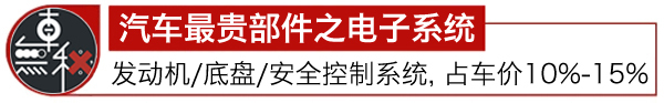 這個與汽車的檔次有關,小型車電子系統較為簡單,價格也更低些,占整輛車價格的10%左右,而豪華車型的電子系統先進而又復雜,平均占據整輛車15%的價格。