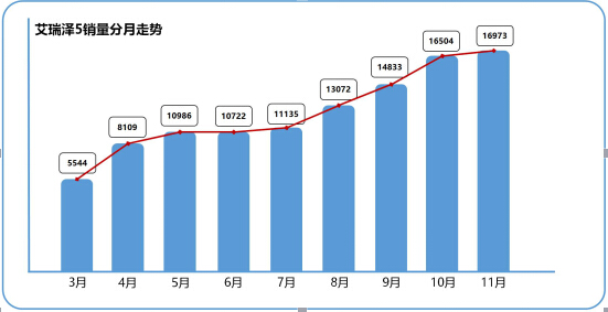 和SUV市場相比,自主品牌在轎車領(lǐng)域的表現(xiàn)一直差強人意,但是,今年奇瑞推出的一款中級家轎可謂是出盡風(fēng)頭,上市253天銷量突破10萬輛,11月份銷量達到16973輛,刷新了自主轎車新車型銷量增速記錄。在11月份舉辦的廣州國際車展期間,艾瑞澤5更是一口氣拿了11項大獎,堪稱拿獎拿到手軟。