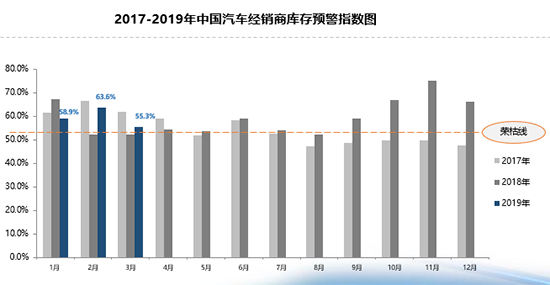 3月,汽車經(jīng)銷商庫(kù)存預(yù)警指數(shù)為55.3%,仍然位于警戒線之上。流通協(xié)會(huì)方面表示,增值稅下調(diào)及部分地區(qū)國(guó)五/國(guó)六車型切換導(dǎo)致部分消費(fèi)者持幣觀望,汽車市場(chǎng)整體銷量不佳。再加上經(jīng)銷商季度末為拿返利主動(dòng)增加庫(kù)存,經(jīng)營(yíng)壓力仍然較大。