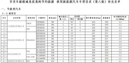 第八批節(jié)能汽車補(bǔ)充目錄公布