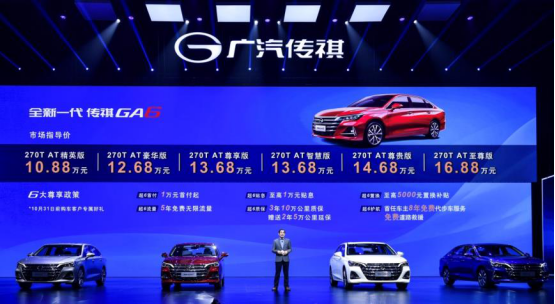 8月23日,全新一代傳祺GA6在成都正式上市。全新一代傳祺GA6帶來了6個(gè)版本,提供赤焰紅、冰海藍(lán)、珠光白、鈦金色、典雅黑、星光銀等6種顏色,售價(jià)為10.88萬元-16.88萬元,另有6大尊享政策:凡在10月31日前購買新車,可享受1萬元起首付、至高1萬元貼息、至高5000元置換補(bǔ)貼、5年免費(fèi)無限流量,以及3年10萬公里質(zhì)保+贈(zèng)送2年5萬公里延保,首任車主還享受8年免費(fèi)代步車服務(wù)+免費(fèi)道路救援。