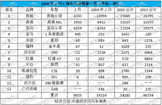 受疫情影響,國(guó)內(nèi)汽車產(chǎn)銷在2月基本處于停擺狀態(tài)。聚焦國(guó)產(chǎn)C級(jí)車市場(chǎng),幾乎全部車型的銷量都出現(xiàn)暴跌,有的甚至沒有出現(xiàn)在行業(yè)的銷量統(tǒng)計(jì)表上。經(jīng)濟(jì)日?qǐng)?bào)-中國(guó)經(jīng)濟(jì)網(wǎng)記者梳理后發(fā)現(xiàn),共有來自10個(gè)品牌的12款車型公布了銷量數(shù)據(jù):2月,國(guó)產(chǎn)C級(jí)車的累計(jì)銷量為9015輛,環(huán)比下滑80.08%,與去年同期相比下降73.58%;今年前2個(gè)月的累計(jì)銷量為54281輛,同比下滑40.18%。