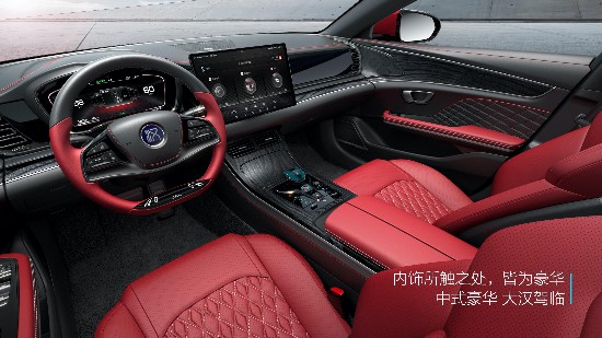 漢整體基于Dragon Face設(shè)計(jì)語言打造,外觀造型采用雙龍并型·性能美學(xué)設(shè)計(jì)語言,內(nèi)飾采用環(huán)抱式品格設(shè)計(jì)語言。內(nèi)飾設(shè)計(jì),左右對(duì)稱的品字形布局營造出和諧大方的中式豪華內(nèi)涵。內(nèi)飾材質(zhì)工藝、色彩紋理把握有度,Nappa真皮、天然真木、真鋁等高級(jí)材質(zhì)恰到好處的使用。