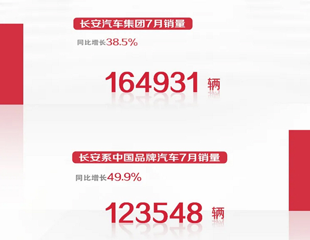 新華網(wǎng)北京8月8日電 8日,長安汽車對外公布的數(shù)據(jù)顯示,2020年7月延續(xù)上升勢頭,長安汽車單月整體銷售164931輛,同比增長38.5%。其中,長安系中國品牌汽車7月銷量達(dá)到123548輛,同比增長達(dá)49.9%。