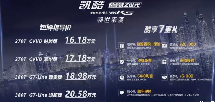 另?yè)?jù)了解,新車指導(dǎo)價(jià)格區(qū)間為16.18-20.58萬(wàn)元。起亞將這個(gè)價(jià)格稱為包牌價(jià),是因?yàn)榘ㄙ?gòu)置稅和最高5000元保險(xiǎn)。根據(jù)官方公布的信息,截止9月6日,全新K5凱酷已經(jīng)收獲10615輛訂單。