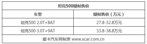 此次曝光的疑似售價(jià)中,還曝光了坦克500將搭載2.0T+8AT變速箱車型,這一點(diǎn)與此前的消息不太吻合。此前曝光,坦克500將搭載長城最新的3.0T+9AT變速箱,疑似售價(jià)為33.8-38.8萬元。而2.0T+8AT車型的推出更多的是降低坦克500車系的售價(jià),將其起售價(jià)下降至30萬元以內(nèi),哈弗H9已經(jīng)迎來的中期改款,售價(jià)為21.48-37.98萬元,同樣搭載了2.0T+8AT動(dòng)力,如果動(dòng)力相同哈弗H9不香嗎?