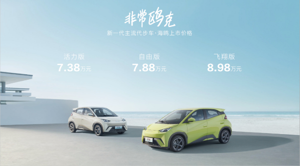 4月26日,比亞迪海鷗正式上市,售價區(qū)間為7.38萬元-8.98萬元。海鷗擁有305km和405km兩種續(xù)航里程(CLTC綜合工況)。4安全氣囊、ESP、快充等十二項全系標配。不僅補強了海洋網(wǎng)的產(chǎn)品矩陣,更成為比亞迪沖擊全新市場空間的生力軍。上市期下訂的用戶,可享包括金融、養(yǎng)護、免費安裝充電樁等多重權(quán)益好禮。