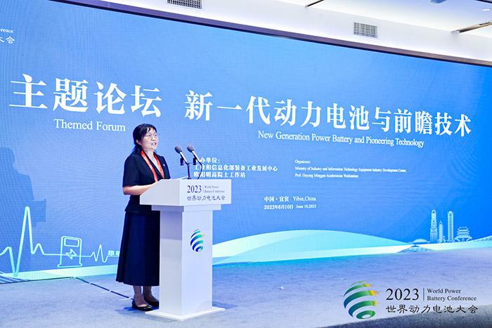 6月10日,中國工程院院士黃小衛(wèi)在四川宜賓主持“新一代動力電池與前瞻技術(shù)主題論壇”。主辦方供圖