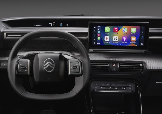 全新雪鐵龍e-C3內部采用較為簡約的設計風格,數(shù)字儀表搭配懸浮式中控屏幕和雙輻式多功能方向盤科技感、實用性較強。此外,該車還保留了中控臺空調控制區(qū)域的實體按鍵,并支持Apple CarPlay等互聯(lián)功能。動力方面,新車搭載一臺最大功率83千瓦的輸出電機,并匹配44千瓦時電池組,純電續(xù)航里程可達320公里,并且還支持最高100千瓦的快充功能。
