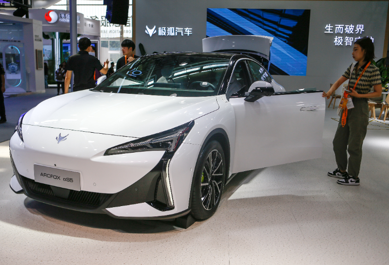 2024年9月13日,參會(huì)者在服貿(mào)會(huì)首鋼園會(huì)場(chǎng)參觀極狐新能源汽車。新華社記者 丁洪法 攝